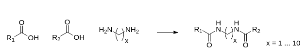 To obtain the special permutation «use the same acid on the left and on the right hand amine» would then justify to load and re-use such a pre-defined list to cover the chemical space efficiently.