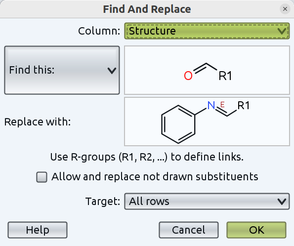 - Choose "Chemistry->Enumerate Combinatorial Library", then draw the reaction using one substructure