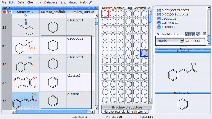 scaffolds, like the Murcko scaffolds, DataWarrior may determine their
