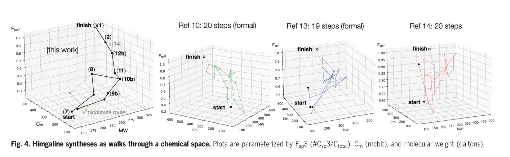 In our recent analysis of chemical synthesis routes, we have frequently incorporated a chemical complexity metric known as Cm (T. Böttcher, J. Chem. Inf. Model. 56, 462–470 (2016)Wink. Although there are numerous methods for calculating molecular complexity, the Cm index appears to be particularly favored by organic synthetic chemists. When analyzing the "direction of travel" of a synthetic route in chemical space, we typically need to quantitatively analyze molecules across three dimensions: Cm, Fsp3, and Mw.(similar to Science 375, 1270–1274 (2022); Nat. Prod. Rep. 2024,doi:10.1039/D4NP00015C)