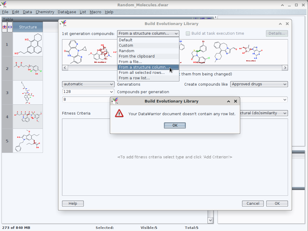Home » DataWarrior » Functionality » Macro for evolutionary library (EL) in Datwarrior (DW)