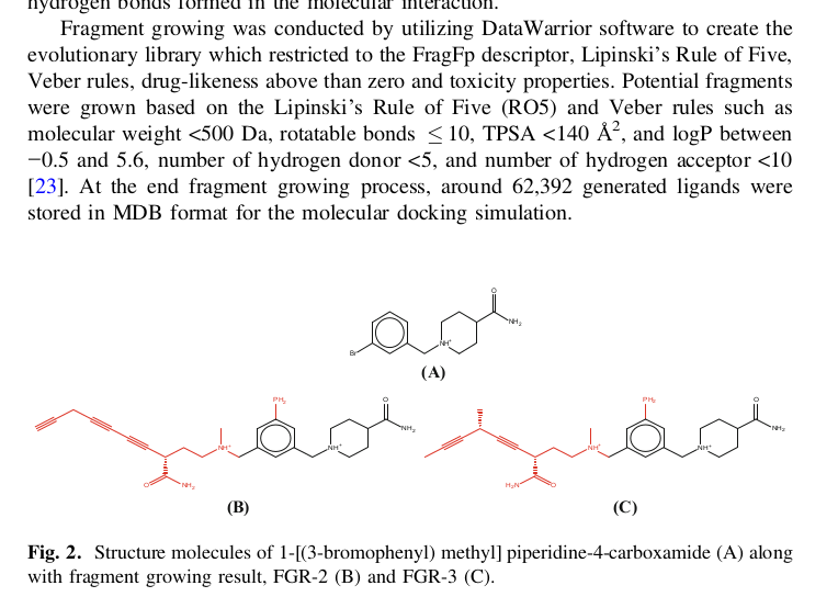 [1] Ningsih, E.G., Hidayat, M.F., Tambunan, U.S.F. (2019). Fragment-Based Drug Design to Discover Novel Inhibitor of Dipeptidyl Peptidase-4 (DPP-4) as a Potential Drug for Type 2 Diabetes Therapy. In: Rojas, I., Valenzuela, O., Rojas, F., Ortuño, F. (eds) Bioinformatics and Biomedical Engineering. IWBBIO 2019. Lecture Notes in Computer Science(), vol 11465. Springer, Cham. https://doi.org/10.1007/978-3-030-17938-0_2 pages 14–24 (paywall).